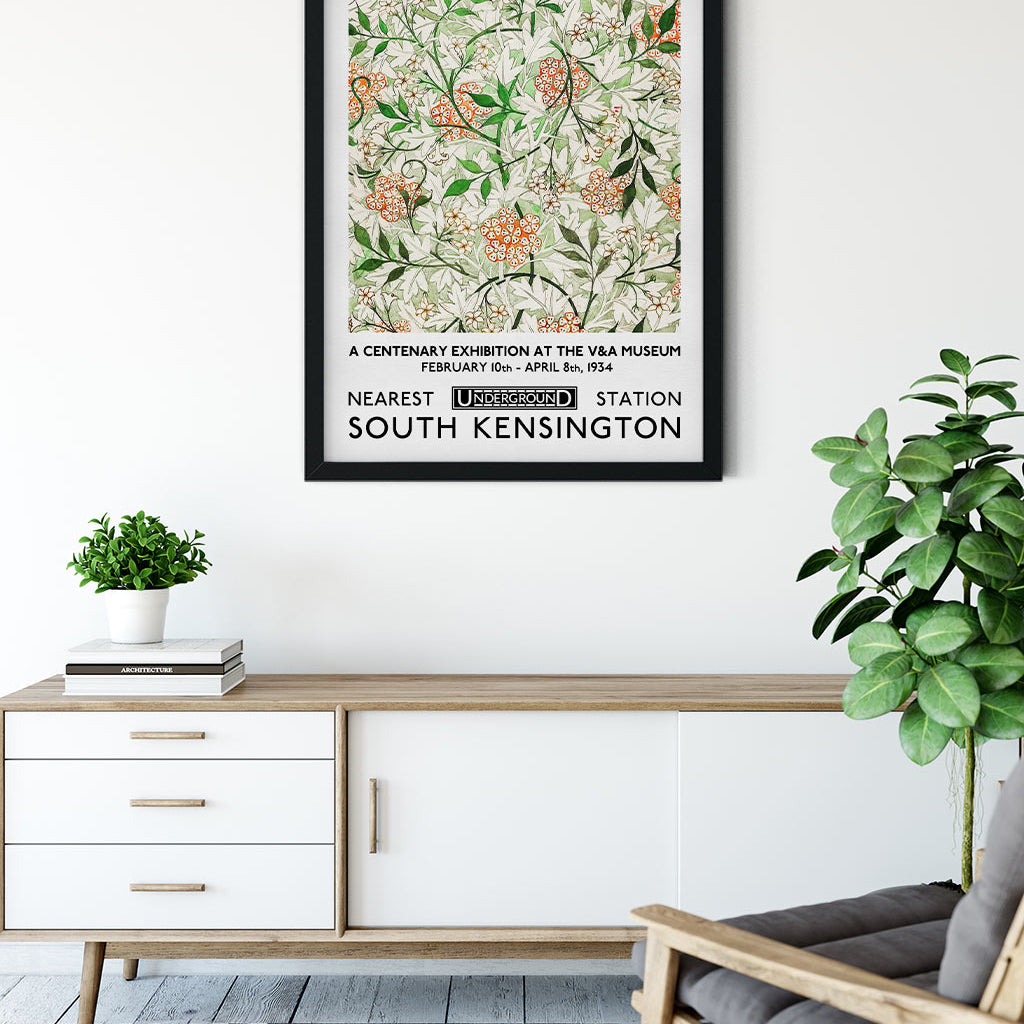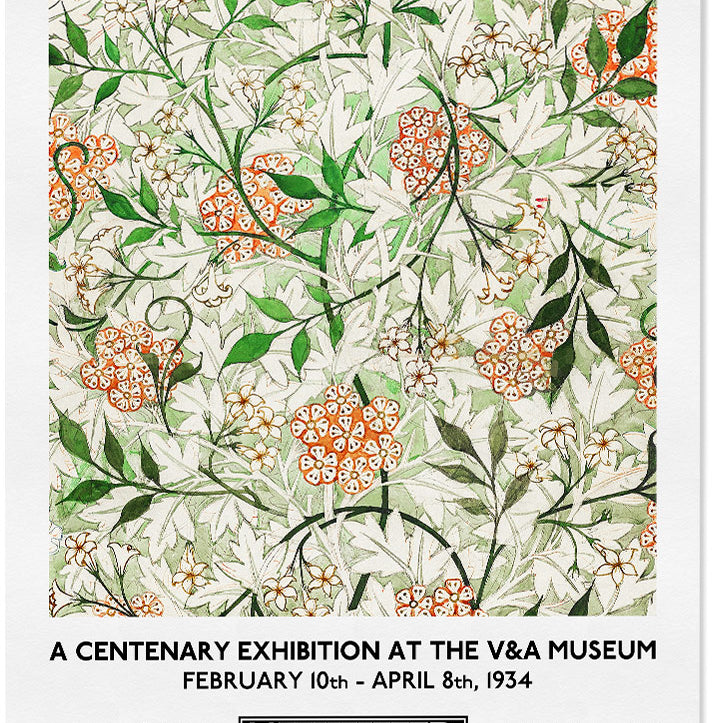Exhibition art print by the famous artist William Morris in green and red colours. A William Morris print will never go out of style and is a great choice of art to decorate your home.