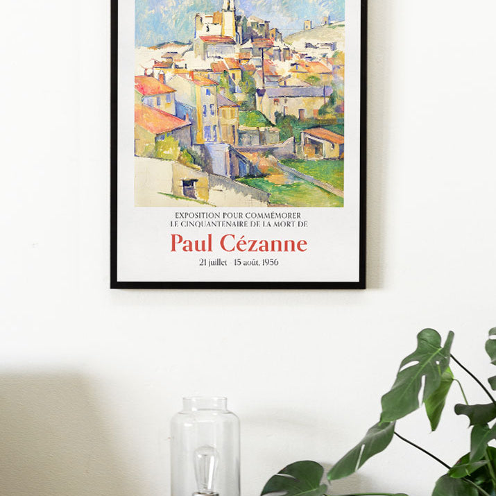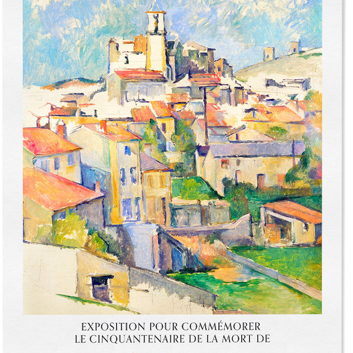 Paul Cézanne exhibition poster showing his landscape painting 'Gardanne'. Cézanne is one of the great Post-Impressionist painters of the 19th century, renowned for his landscapes, portraits, and complex still-lifes.