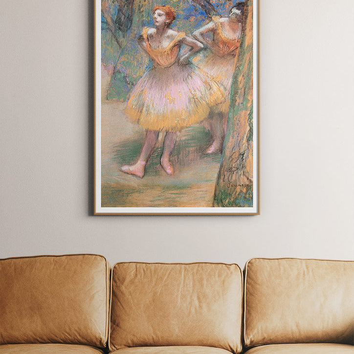 Edgar Degas (1834-1917) exhibition poster featuring his painting Two Dancers. Degas was a French Impressionist artist famous for his pastel drawings and oil paintings but he also produced bronze sculptures, prints and drawings. He is especially identified with the subject of dance as more than half of his works depict dancers.