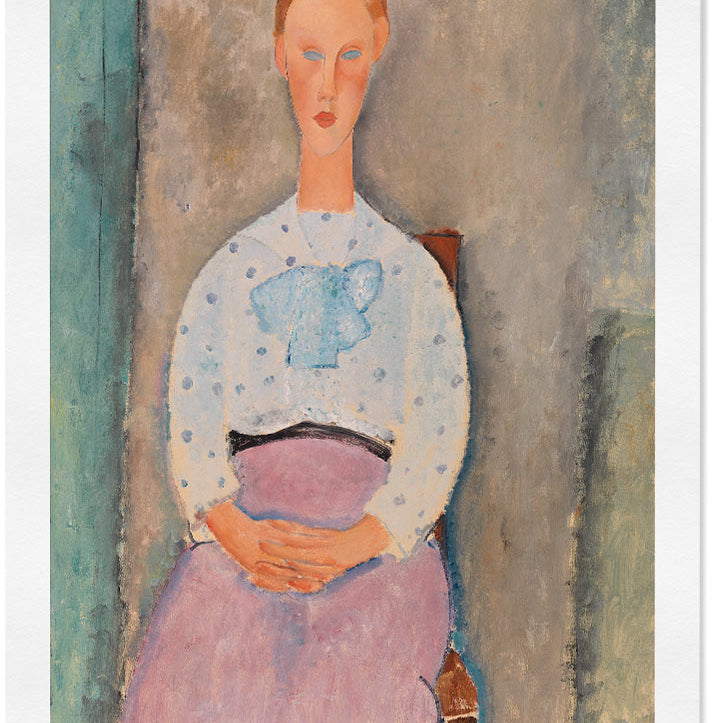 Amedeo Modigliani exhibition posters featuring his painting 'Girl with a Polka-Dot Blouse'. Experience the beauty of Amedeo Modigliani's artwork with our collection of art prints and exhibition posters.