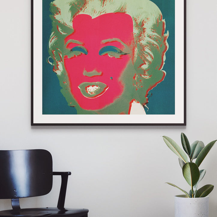 Andy Warhol square art print. Warhol created three Marilyn Monroe screen print portfolios in 1967, a few years after the actress passed away in 1962.