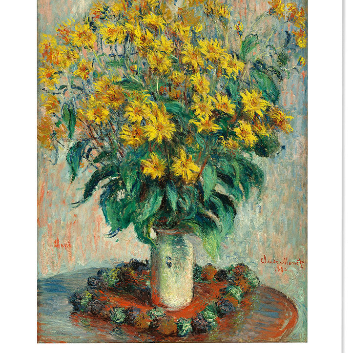 Claude Monet art print featuring his floral still life painting Jerusalem 'Artichoke Flowers'. Discover the beauty of Claude Monet's art with our stunning selection of art prints and exhibition posters.