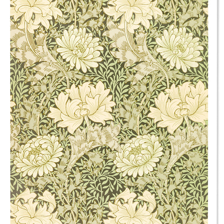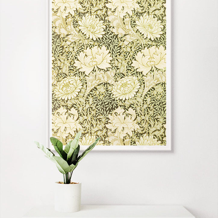Chrysanthemum themed art print inspired by William Morris. This green floral art print will never go out of style and is a great choice of art to put on your walls.