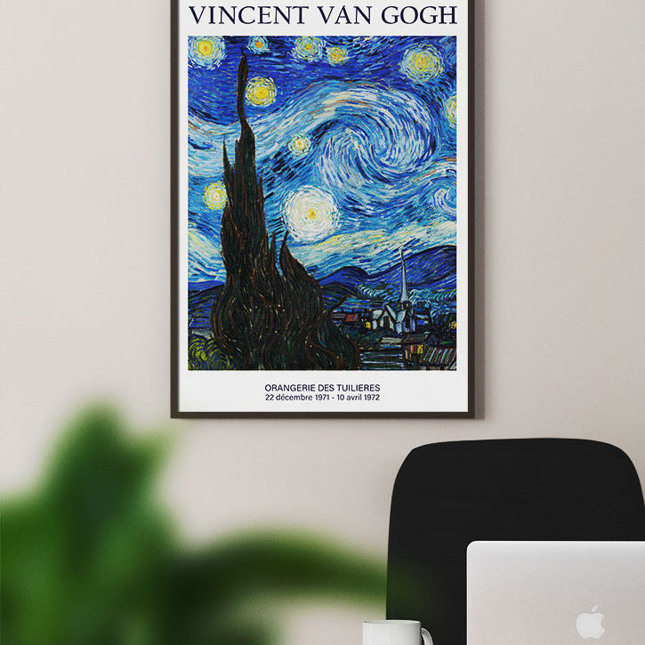 This exquisite Vincent van Gogh exhibition poster, depicting the famous Starry Night, is a tasteful way to display classic art in any home.me or office.