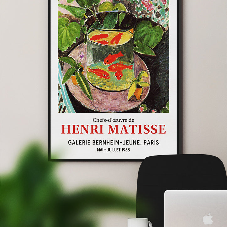 This exhibition poster, featuring Henri Matisse's renowned painting the Goldfish, showcases the artist's masterful use of colour and composition.
