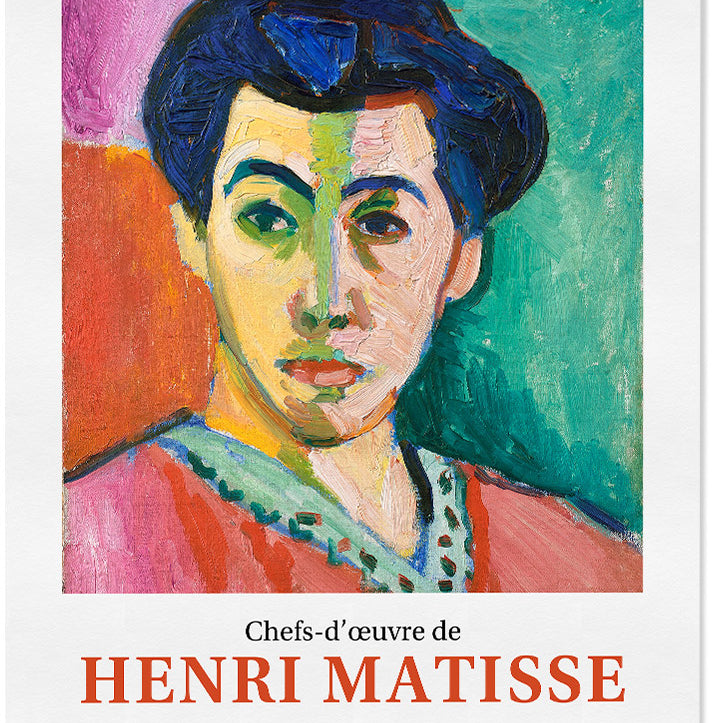 Henri Matisse art poster, featuring his painting the The Green Stripe (La Raie Verte), also known as Portrait of Madame Matisse.