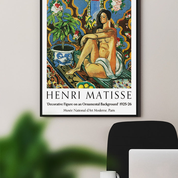Henri Matisse art poster, featuring his painting the Decorative Figure on an Ornamental Background. Explore the Henri Matisse Collection >