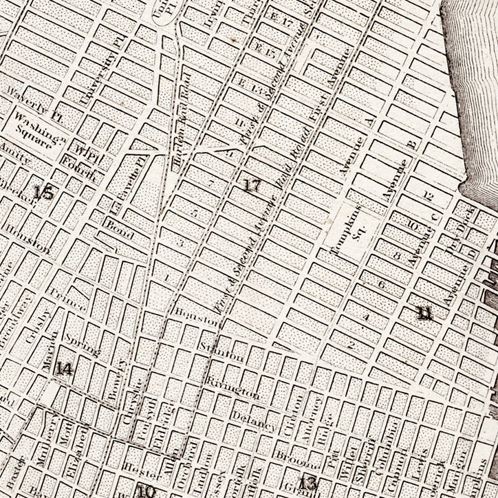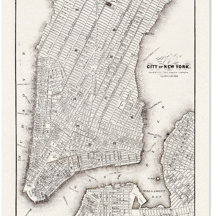 Travel back in time with this vintage map of New York City. Featuring a detailed black and white reproduction of the streets of New York, this map is a must-have for any history lover or NYC enthusiast.