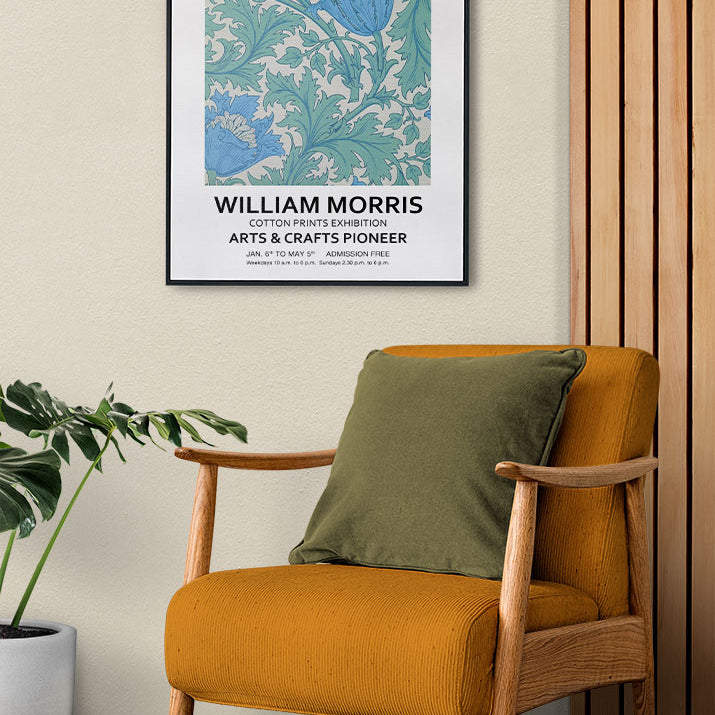 A beautiful exhibition poster by William Morris. William Morris (1834–1896) was a British textile designer, poet, novelist and socialist activist associated with the Arts and Crafts Movement.
